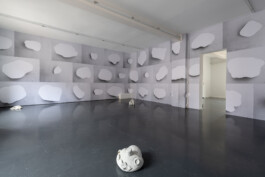 Andreas Fiedler: In deiner künstlerischen Arbeit wird die Frage nach dem Bezugsrahmen immer wieder gestellt. Mikro- und Makroebene werden in dieser Ausstellung bestimmt in Bewegung bleiben. Sei es mit den Skulpturen – neben den schon erwähnten überdimensionierten Kaugummis beispielsweise auch Möbelstücke, denen du ihre Funktionalität entzogen hast – oder mit dem rosa gestrichenen Stallraum mitten in einem Skulpturenpark.