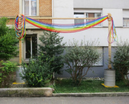 Ein hängender Regenbogen aus bunten Wasserschläuchen verbindet die Vorgärten zweier Häuser in Kleinbasel. Inspiriert durch ein Gedicht von Meret Oppenheim entwarfen Z’Rotz und Schwander die skulpturale Intervention für die Ausstellung zum 100. Geburtstag der Schweizer Künstlerin. Der Regenbogen wurde 2014 im Rahmen der Ausstellung Nukleus Nairs im Kulturzentrum Nairs in Scuol nochmals neu interpretiert.