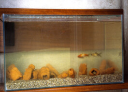1996 stellte sich die Frage, wie kleine Tonobjekte, die durch den Abdruck auf Metallstangen entstanden waren, in eine Ausstellung integriert werden könnten. In einem Aquarium umschwammen über längere Zeit zwei Goldfische die Skulpturen und erzeugten so eine imaginäre Galerie. In den folgenden Jahren baute ich immer wieder modellhafte Skulpturen, die den realen Ausstellungsräumen um Vorstellungen anderer Räume erweitern.