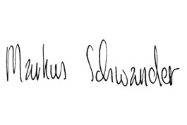 „Einigen deiner Arbeiten, die hier angesprochen werden, geht ein Prozess voraus, bei welchem eine einzige Tätigkeit von verschiedenen Personen durchgespielt wird. Es werden Daten gesammelt. Das erinnert mich an emprisch-wissenschaftliche Methoden. So kann eine Menge Information zusammengetragen werden, horizontal. Damit aber Ordnung in die Sammlung kommt, braucht der Forscher eine Frage, auf welche er die Antwort mit seinem Tun finden will. Und auch beim Betrachter oder Leser einer solchen ‹Studie› entsteht ein Wunsch nach Schlüssen oder Ergebnissen. Im Falle der Unterschriften-Arbeit wurden Leute aufgefordert, den Namen ‹Markus Schwander› zu schreiben. Die einen Schriften zeigten Dynamik, die anderen ein auf Schönheit bedachtes Schriftbild, Hast, Kraft etc. Der Leser dieser Signaturen sieht sich vor einem Rätsel, er wird zum Detektiv, denn geben doch all diese Unterschriften vor, eine bestimmte Person mittels ihrer Handschrift zu repräsentieren. Unweigerlich ist man auf der Suche nach der wahren, nach der richtigen Spur von Markus Schwander.“